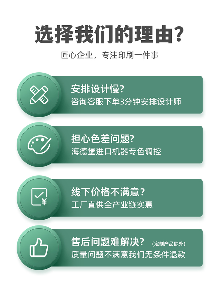 客服会给每个顾客制定快速、高效、省钱的个性方案,顾客无需为下单制作的规格、尺寸、工艺、数量、价格的选择而纠结。